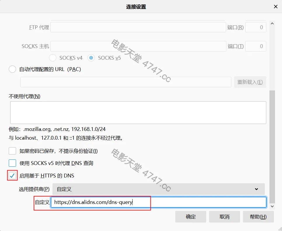 第三步:在设置页面的底部,找到并勾选“启用基于HTTPS的DNS”,选择“自定义”的提供商,并输入接口地址: https://dns.alidns.com/dns-query ,点击【确定】。