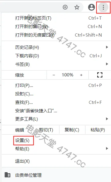 第一步:打开Chrome浏览器,从 Firefox 菜单栏中点击 【设置】选项。